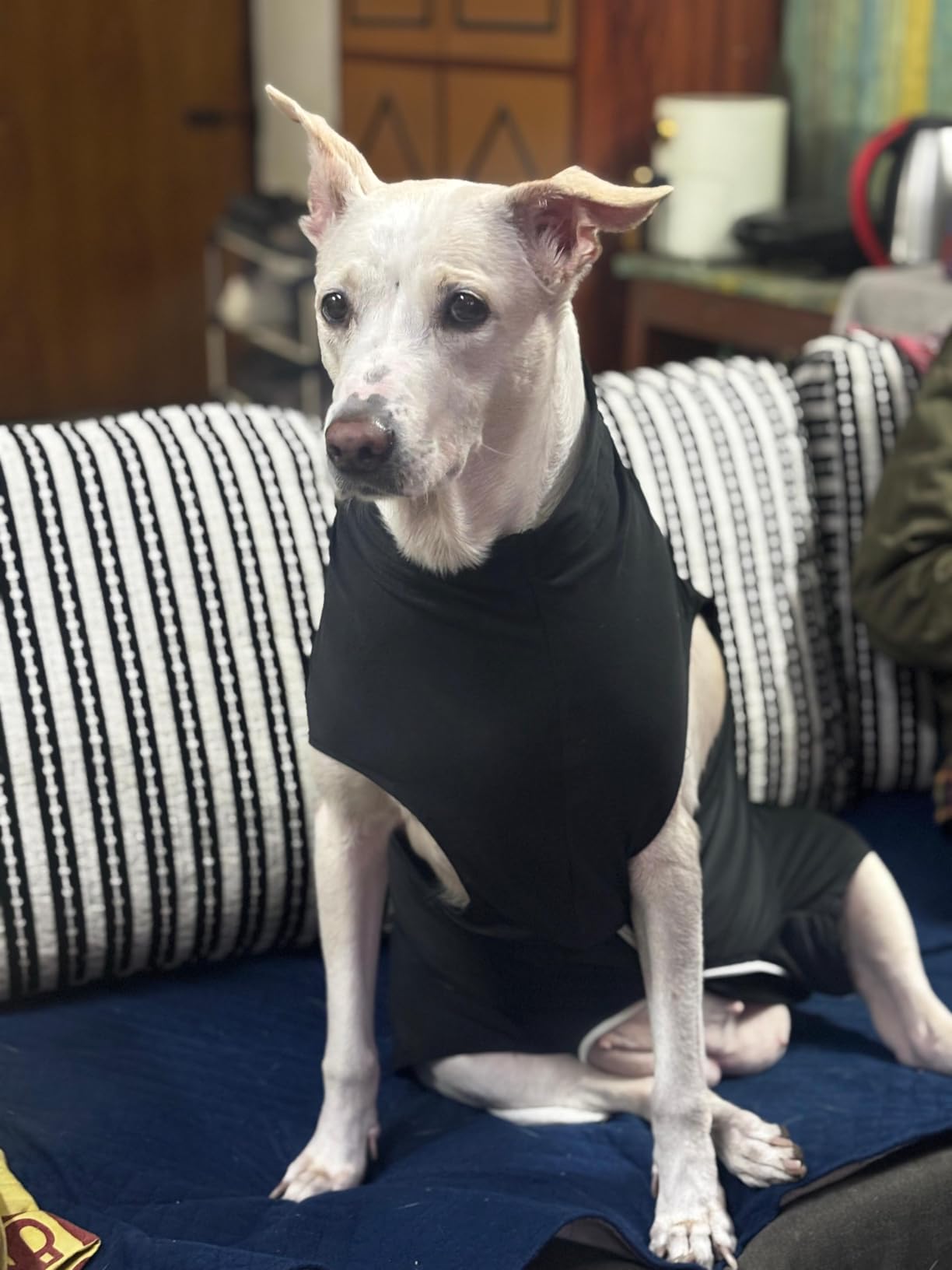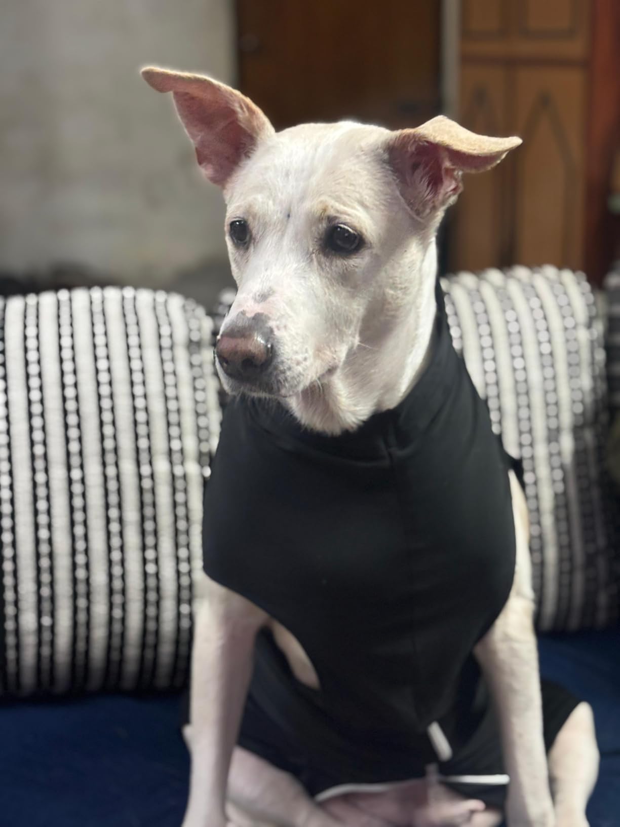 There is a flap of fabric that covers the zipper to ensure that the zipper does not come in direct contact with the dog’s skin or recovery site.